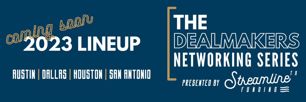 Streamline is excited to introduce the Dealmakers Networking Series. This event series is the ideal gathering for career real estate professionals to meet with local experts in a variety of sectors a part of making the real estate investing wheel spin round. These are also a great opportunity for those just entering the space to connect with veterans in the space to explore mentorship and possible partnership opportunities to continue their real estate journey.